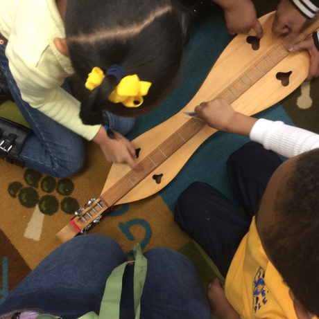 The teaching artists brought in an Appalachian Dulcimer to accompany the Poetry Tree construction.