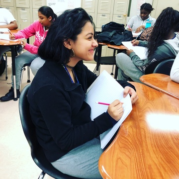 After spending time to craft their individual pieces, the students explored what it means to collaborate on a community poem and incorporate all the voices in the room. They took lines from their individual poems and put them together to form one large community work. Here are a few excerpts from the rough drafts formed in both classes: