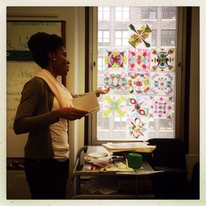 Then, we switched gears and CWP’s Pamella Allen took the reins and brought us into the naturalistic and logical world of the mandalas. Not only did we create works of art that could easily be integrated into a geometry or science lesson with the Common Core, but we created beautiful mandalas to hang in our windows, as well as “idea books” and haikus to go along with them.