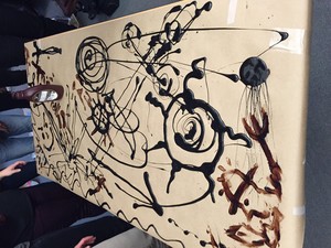 Our facilitator was transparent with his experiences as an educator in New York City public school. In one particular classroom, he had 35 students, all of which were of various ages, spoke a total of 13 languages, and had learners of all kinds of abilities. He explored the importance of creating activities in lesson plans that incorporate movement, sound, and collaboration, which give students artistic agency and allow classes to retain lesson objectives and meet common core standards. The most memorable aspect of this workshop was the closing activity where we created a mural with only Hershey’s Chocolate Syrup as our material. In two separate groups, we collectively created a mural by simply building off one another. This activity is great for students of all ages and learning styles, as it requires participants to be open and relentlessly engage with the chocolate syrup as their main tool. For control freaks like me, this was an opportunity to trust the artistic process of my group. In the end, participants enjoy the chocolate syrup as a treat.